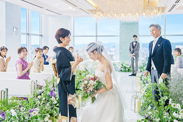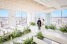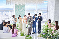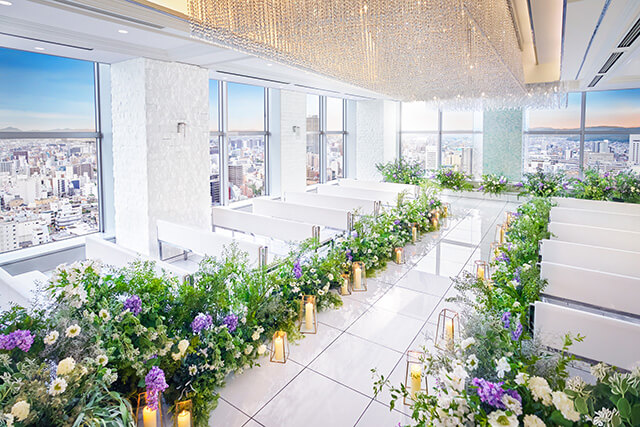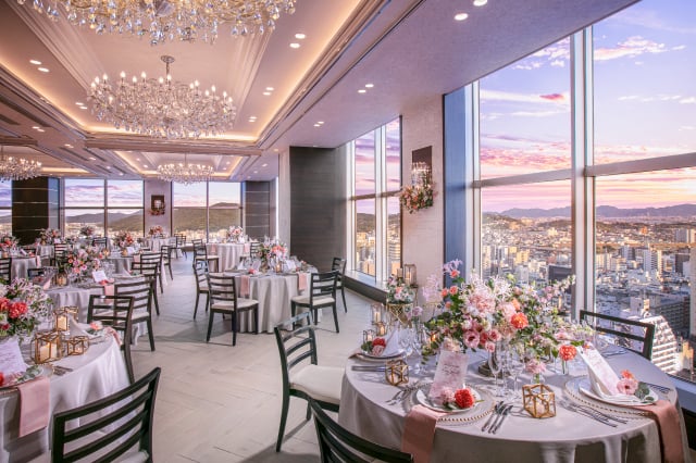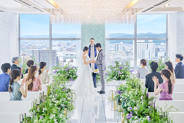 「佳き日」という名の祝福のステージ。永遠の記念日となる当日は、窓いっぱいに広がる眺望さえも、おふたりとゲストだけのものです。