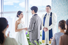 清らかな讃美歌の中で永遠の誓いを。厳かでロマンティックな空気がふたりを包み込みます。
