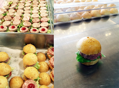 ずらりと並んだ100個近い数のハンバーガー!