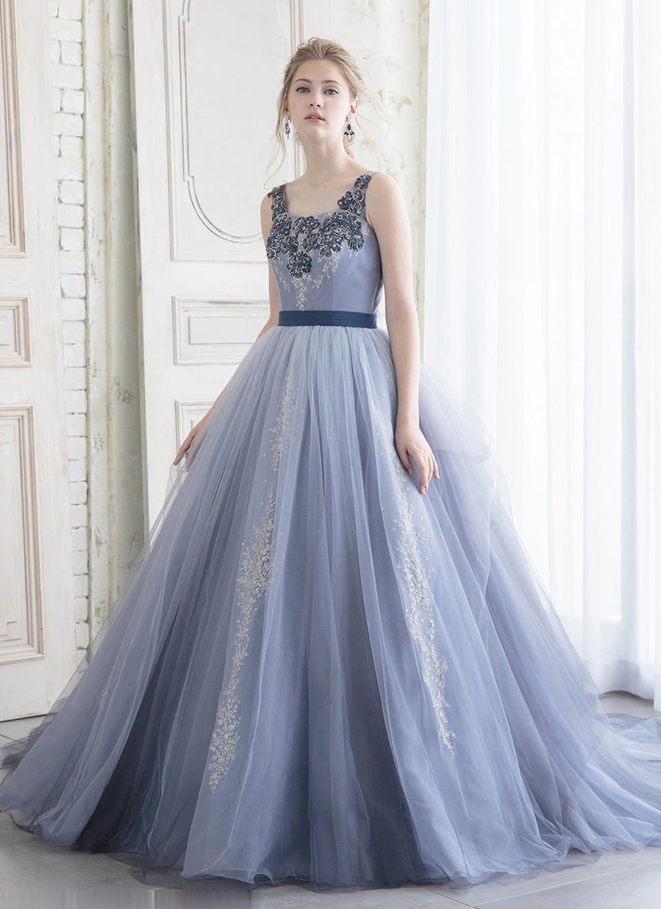 一面の大きな窓から見渡す街の景色をいかした洗練された空間。都会的なドレスはもちろん、ふわりとした愛らしいドレスは煌めくシャンデリアと引き立ちあいます。古典柄をあしらった和装もシックな会場デザインと良い相性です。