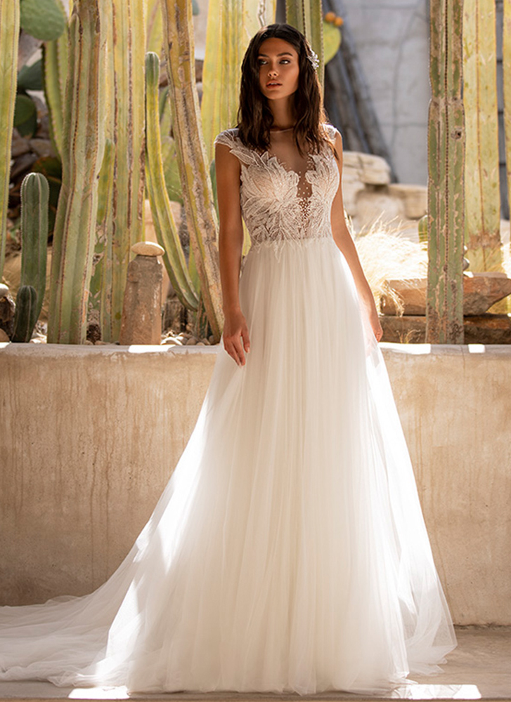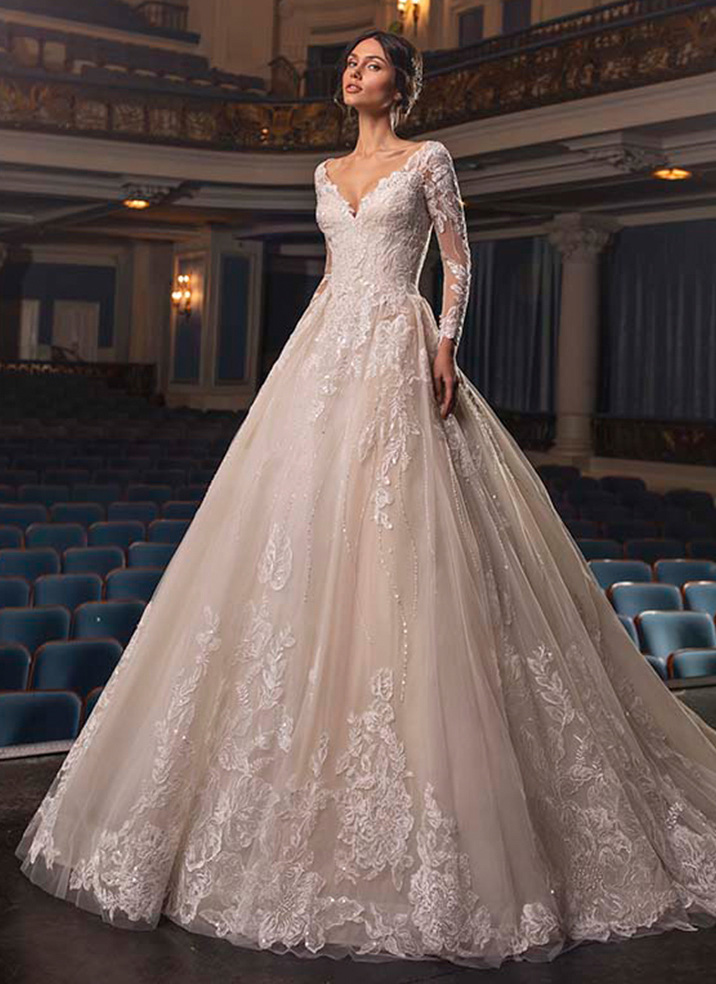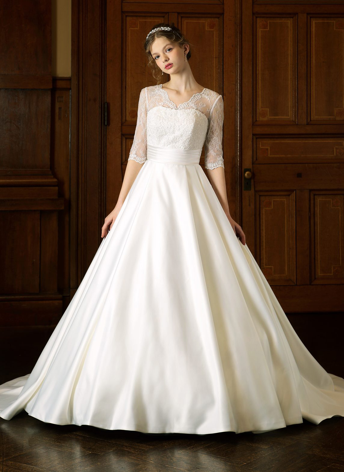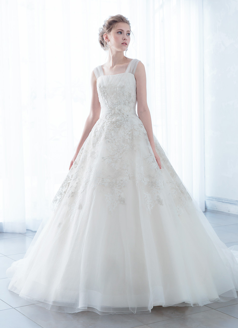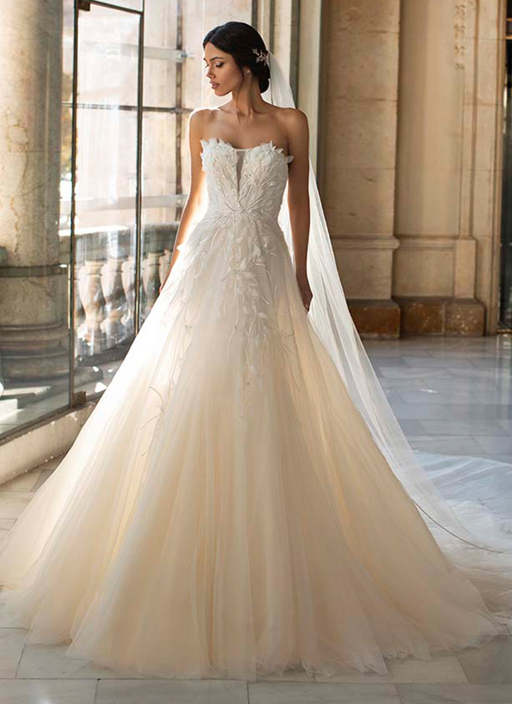 サロンには常時1000着以上のドレスをご用意しています。トラディショナルな王道ウエディングドレスから、洗練のインポートドレス、「PRONOVIAS(プロノビアス)」など有名ドレスブランドまでラインナップ。滑らかで上質なシルクや、繊細で美しいレースなど素材にもこだわりをもってセレクトしています。