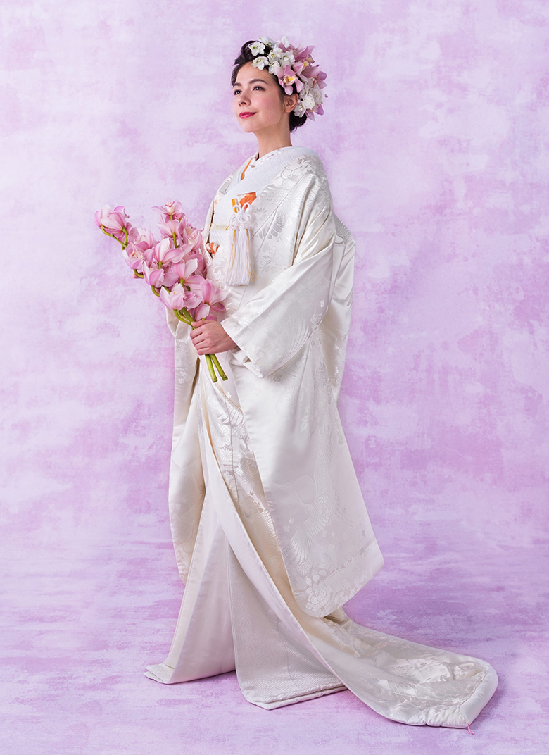 空に浮かぶチャペルは眩しいほどの光に包まれます。純白に輝くウエディングドレスもしっとりとした白無垢も、この澄んだ美空間を象徴するよう。纏う衣裳や装飾をトータルコーディネートしておふたりの世界観に。