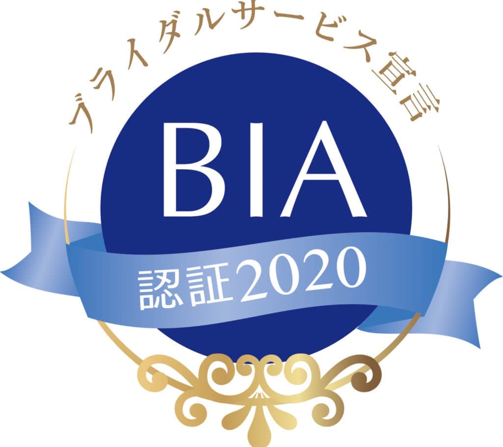 公益社団法人日本ブライダル文化振興協会(以下。「BIA」といいます。)では、この趣旨に賛同し、宣言を遵守することを誓約した事業者を「ブライダルサービス宣言事業者」として認証し、「宣言証明」及び「宣言マーク」の使用を認めております。