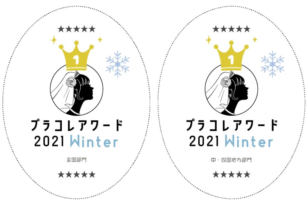 『プラコレウェディング』にて、2021 Witer 全国1位、中・四国エリア部門1位を受賞致しました!
