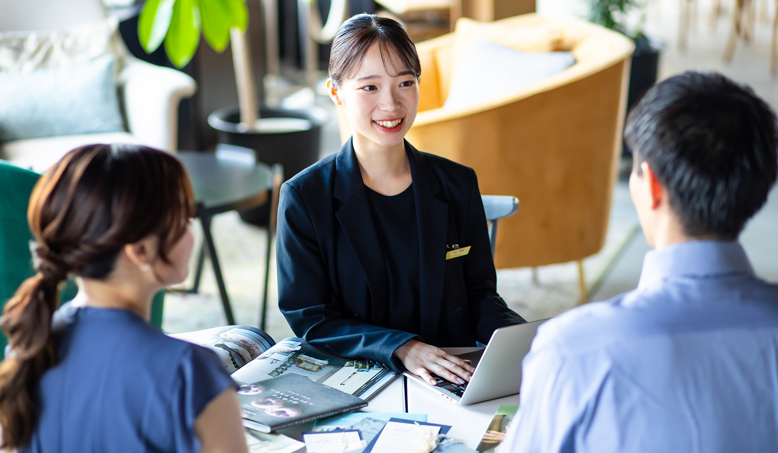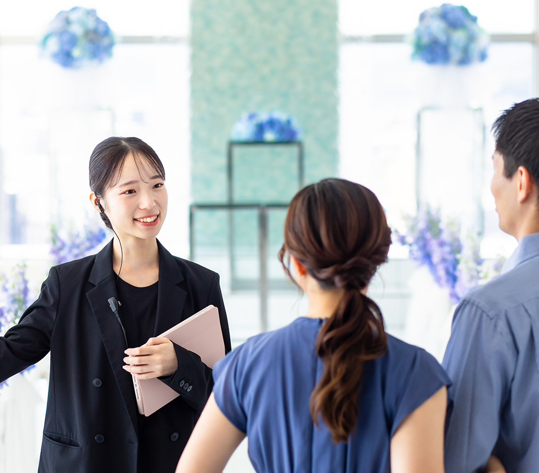 挙式ご希望日まで時間がない場合でもスピーディに対応。遠方にお住まいの新郎新婦には、足をお運びいただかなくても理想のウェディングが叶えられるよう細やかにご提案、サポートいたします。